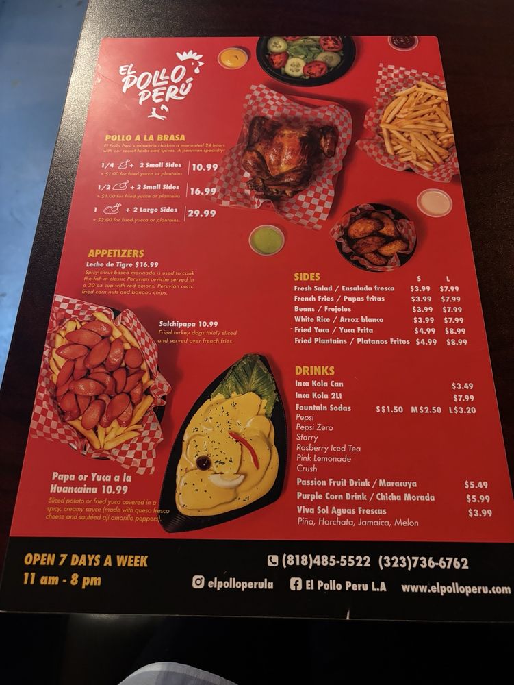 El Pollo Peru in Los Angeles offers a taste of Peru with its flavorful and juicy chicken, tender lomo saltado, and delightful ceviche. The restaurant is praised for its excellent customer service, comfortable ambiance, and cleanliness. Customers rave about the generous portion sizes, fresh and flavorful food, and welcoming atmosphere for dining in or taking out. Standout dishes include the causa de pollo, saltado mixto, ceviche mixto, and the popular pollo a la brasa. The Jalea de Mariscos and salsitas picantes are also highly recommended for those seeking a taste of authentic Peruvian cuisine. With a mix of traditional dishes and friendly service, El Pollo Peru stands out as a must-visit spot for Peruvian food lovers.